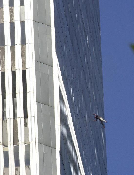 ![]() 200 Jump, Fall, Leap, Dive and Plunge to Death From WTC By Dennis Cauchon and Martha Moore, USA TODAY 09/02/2002 - 09:26 PM ET NEW YORK - USA TODAY estimates that at least 200 people jumped to their deaths that morning, far more than can be seen in the photographs taken that morning. Nearly all were from the north tower, which was hit first and collapsed last. Fewer than a dozen were from the south tower. At first, it seemed like debris. Large objects were falling from the top of the World Trade Center's north tower, just a few minutes after American Airlines Flight 11 hit. "It took three or four to realize: They were people," says James Logozzo, who had gathered with co-workers in a Morgan Stanley boardroom on the 72nd floor of the south tower, just 120 feet away from the north tower. "Then this one woman fell." She fell closer to the south tower, he recalls. Logozzo saw her face. She had dark hair and olive skin, a white blouse and black skirt. She fell with her back to the ground, flat, staring up. "The look on her face was shock. She wasn't screaming. It was slow motion. When she hit, there was nothing left," Logozzo says. Logozzo cried, "Oh my God!" and raced for the stairs. When he got to the street 45 minutes later, he looked up. By then, his building had been struck by United Airlines Flight 175. From the ground, he saw two more people jump. This time, they were from his building. The story of the victims who jumped to their deaths is the most sensitive aspect of the Sept. 11 tragedy. Photographs of people falling to their deaths shocked the nation. Most newspapers and magazines ran only one or two photos, then published no more. USA TODAY ran one photo Nov. 16. It was worse than people realize. The jumping started shortly after the first jet hit at 8:46 a.m. People jumped continuously during the 102 minutes that the north tower stood. Two people jumped as the north tower began to fall at 10:28 a.m., witnesses said. For those who jumped, the fall lasted 10 seconds. They struck the ground at just less than 150 miles per hour — not fast enough to cause unconsciousness while falling, but fast enough to ensure instant death on impact. People jumped from all four sides of the north tower. They jumped alone, in pairs and in groups. Most came from the north tower's 101st to 105th floors, where the Cantor Fitzgerald bond firm had offices, and the 106th and 107th floors, where a conference was underway at the Windows on the World restaurant. Others leaped from the 93rd through 100th floor offices of Marsh & McLennan insurance company. Intense smoke and heat, rather than flames, pushed people into this horrific choice. Flight 11 struck the 94th through 98th floors of the north tower, shooting heat and smoke up elevator shafts and stairways in the center of the building. Within minutes, it would have been very difficult to breathe. That drove people to the windows 1,100 to 1,300 feet above ground. There were several reasons more people jumped from the north tower than from the south. The fire was more intense and compact in the north tower. The jet hit higher, so smoke was concentrated in 15 floors compared with 30 floors in the south tower, which was hit on the 78th through 84th floors. The north tower also stood longer: 102 minutes vs. 56 minutes. And twice as many people were trapped on the north tower's upper floors than in the south tower, where occupants had 161/2 minutes to evacuate before the second jet hit. The New York medical examiner's office says it does not classify the people who fell to their deaths on Sept. 11 as "jumpers." "A 'jumper' is somebody who goes to the office in the morning knowing that they will commit suicide," says Ellen Borakove, spokeswoman for the medical examiner's office. "These people were forced out by the smoke and flames or blown out." She says the medical examiner's office couldn't determine who jumped because the injuries were similar to those suffered by the people killed in the collapse of the towers. The manner of death for all those who died was listed as homicide on death certificates. To make its estimate of the number of people who plunged from the Trade Center, USA TODAY reviewed videos and photographs, interviewed witnesses and analyzed the time and location of the jumping. The newspaper discussed its conclusion with officials in the fire department and medical examiner's office who, while not making calculations of their own, deemed an estimate of 200 jumpers as accurate. The New York Times counted 50 different jumpers in a review of photographs and videotapes. USA TODAY's estimate attempts to include people whose falls were not documented. Nearly all photos were of the north tower's north and east faces, which were more accessible to photographers coming from uptown Manhattan. But witnesses reported that numerous people leapt from the north tower's south and west sides as well. On the south side, firefighters reported 30 to 40 bodies on the roof of the 22-floor Marriott Hotel, adjacent to the north tower. On the west side, falling bodies crashed onto the awning covering the circular VIP driveway. The thudding of bodies at this entrance can be heard on a video taken near there by French cameraman Jules Naudet, whose footage was broadcast on CBS on March 11. On the east side, people plummeted into the plaza, best known for its globe sculpture. Blood covered the glass walls and revolving doors that led to the plaza from the second-floor mezzanine in the north tower. People evacuating the north tower walked by this horrible sight. "The windows were red ... and bits of bodies were outside. We were stunned and amazed," says Richard Moller, who escaped from the 78th floor. After the first jet crash, Port Authority police Officer David Lim took an escalator from the lobby of the north tower to the plaza level, one floor above. He saw a disfigured body near a stage where musical groups performed on the plaza. "I said, oh my God! I've got t