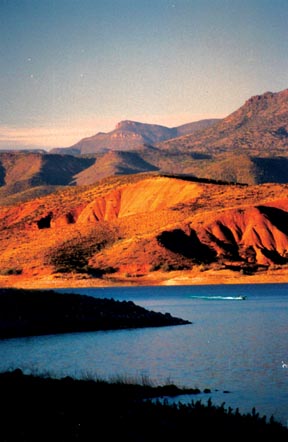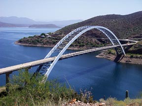 ![]() At an elevation of 2151' ASL, air temperatures generally fall 5º to 10º cooler than Phoenix in the summer, and 20º to 30º warmer than Payson in the winter. Although water temperatures can exceed 90ºF in July, cooling afternoon thunderstorms are a blessing. With miles and miles of beach area for camping along the lake's edges, it is the largest man-made reservoir located entirely within the state of Arizona.